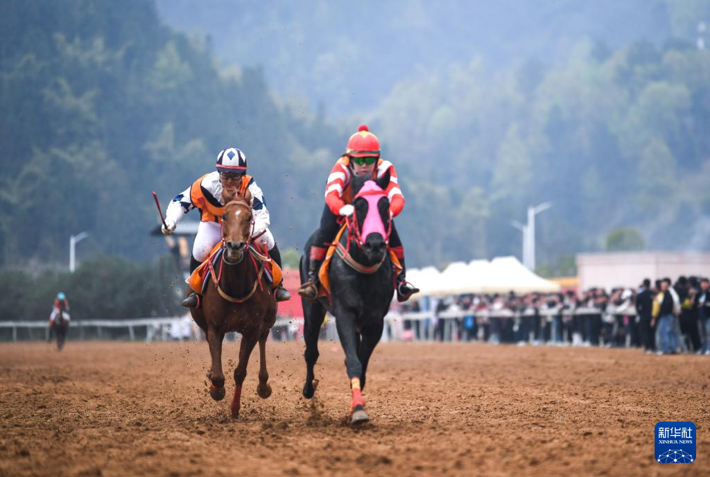 3月7日,选手在贵州省三都水族自治县参加“村马”比赛。