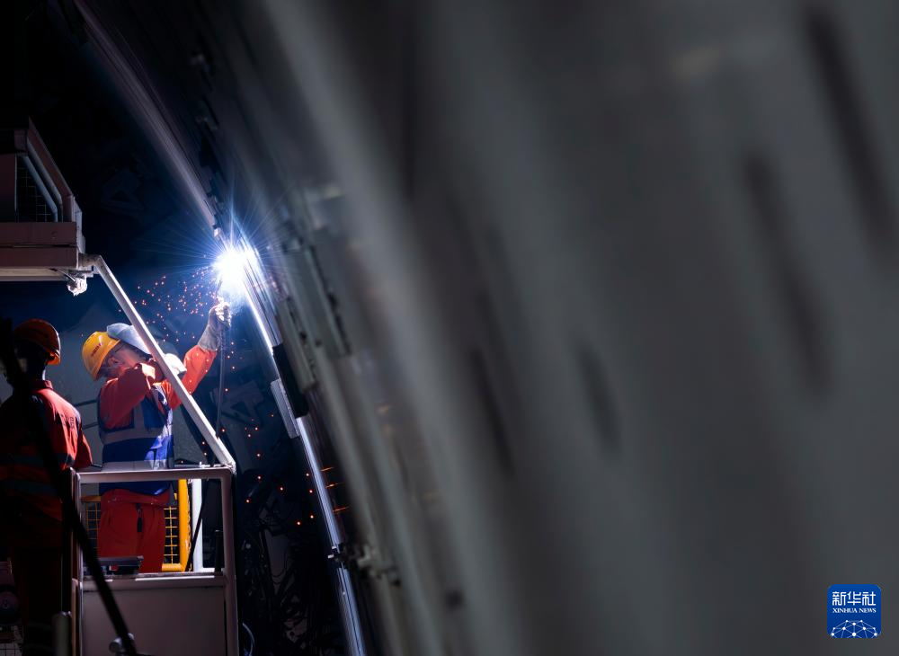 3月4日,中铁十四局工程作业人员在对隧道内管片进行焊接加固。当日,厦金大桥(厦门段)环岛路右线隧道完成盾构掘进,顺利贯通。