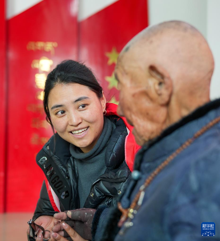 3月5日,拉萨纳金街道工作人员在为辖区内的孤寡老人剪指甲,用暖心行动传承雷锋精神。