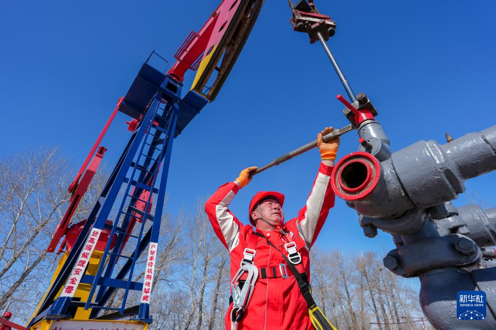 在大庆油田第六采油厂,一台台抽油机迎着寒风不停运转,将地下原油源源不断地抽至地面。能源保供一线的石油工人每天需要对采油设备开展日常保养和应急抢修,并对各项生产数据进行采集作业,保证采油设备正常运行,保障油田稳产。