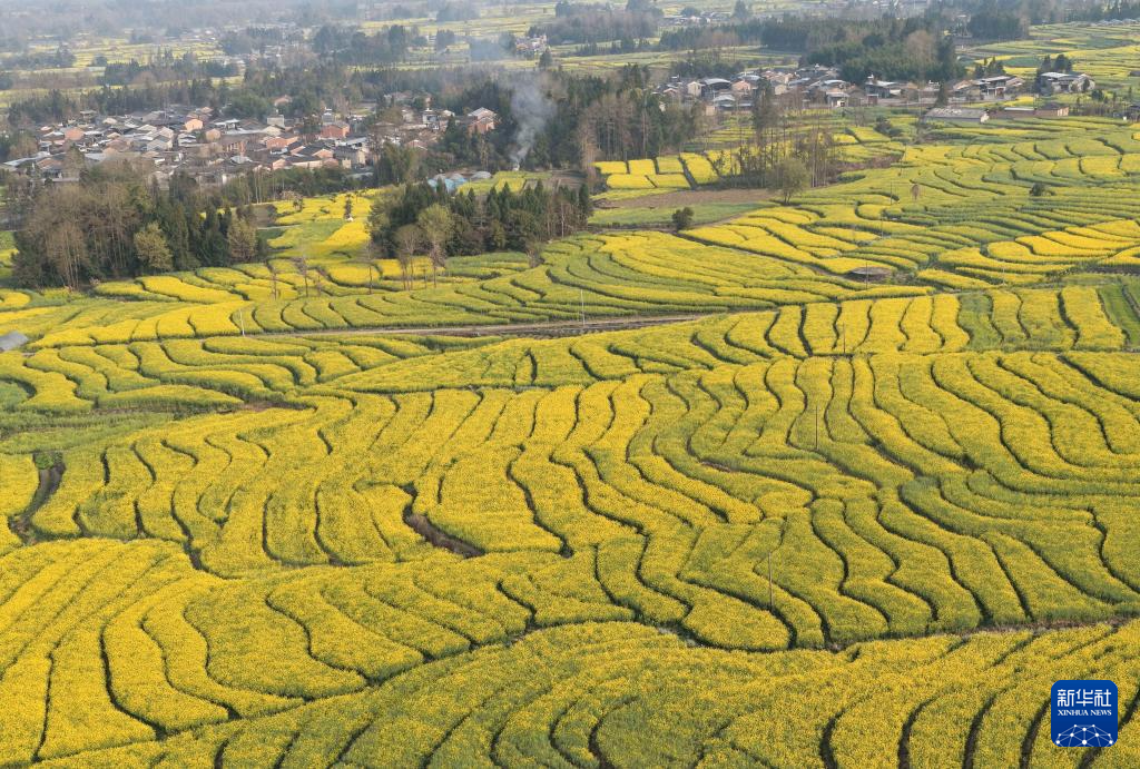 3月8日,游客在四川省广安市广安区花桥镇油菜花田间赏花游玩(无人机照片)。