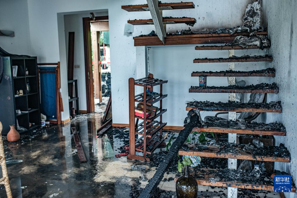这是3月11日在刚果(金)戈马市拍摄的遭无人机袭击的建筑内部。