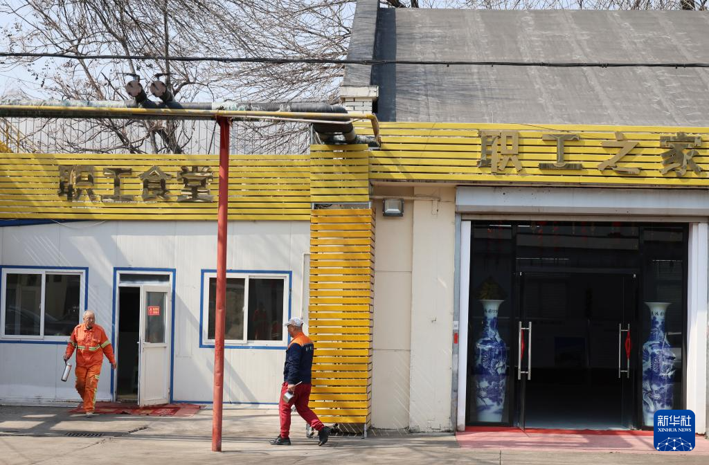 3月12日,环卫工人在天津市南开区长江道环卫职工之家就餐。