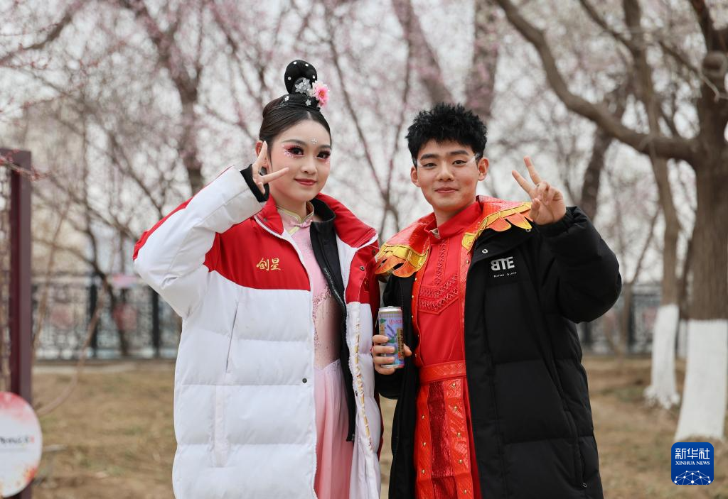 3月13日,参加活动的演员在天津市红桥区北洋园内留影。