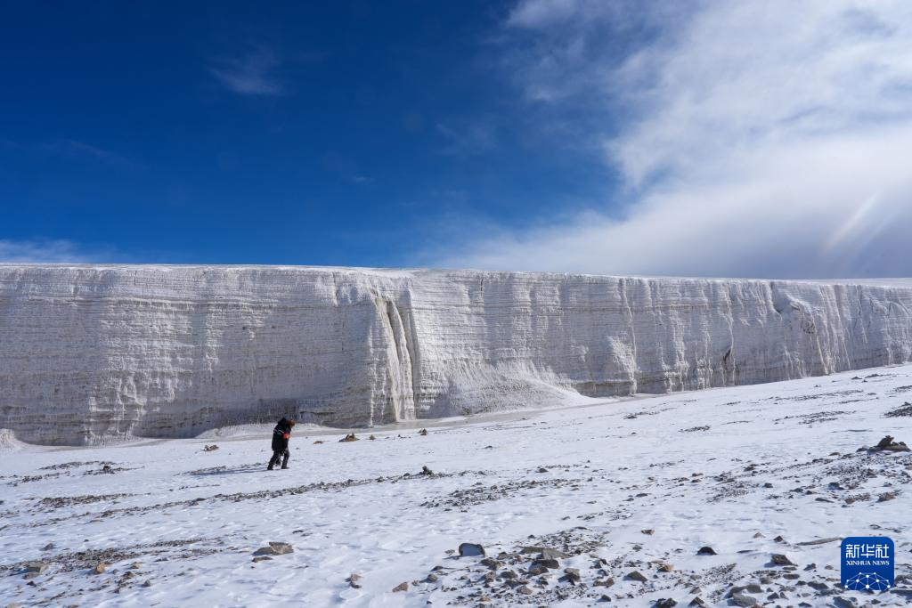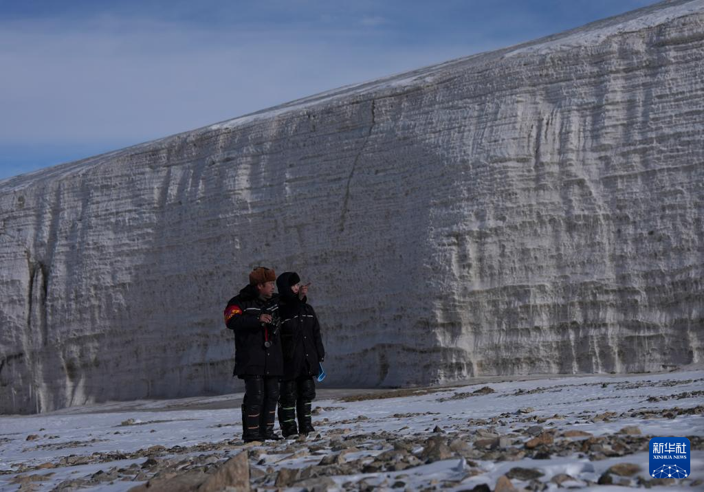 3月12日,生态管护员在位于青海省海北藏族自治州祁连县的八一冰川巡查。