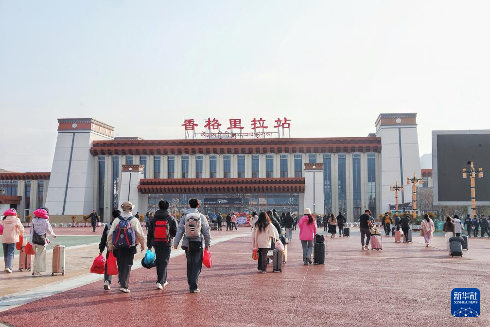 3月13日,旅客在云南香格里拉站进站乘车。