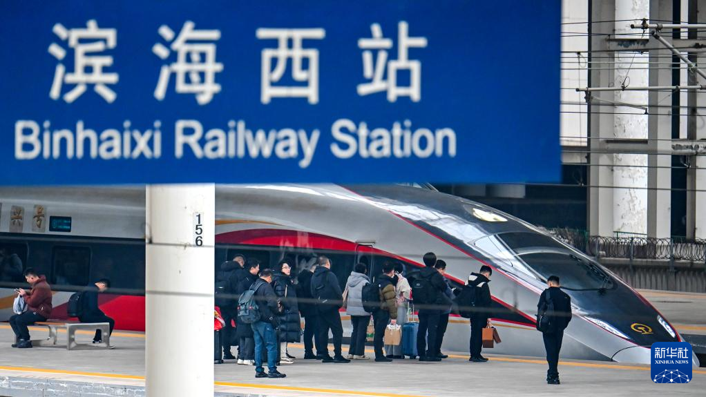 3月13日,旅客在天津滨海西站乘车出行。
