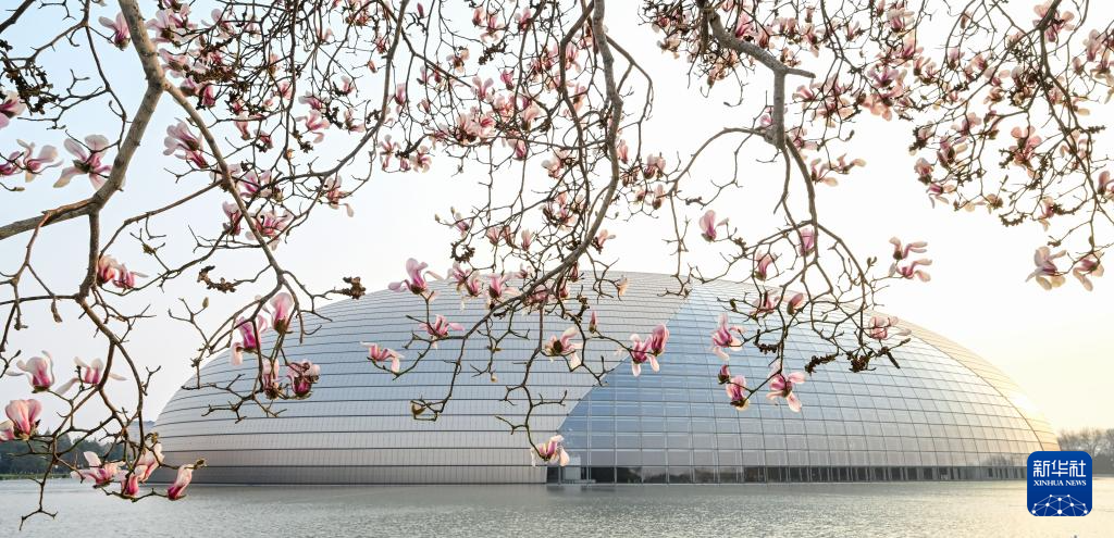 随着气温逐步回升,位于北京的国家大剧院旁的玉兰花悄然盛开(3月12日摄)。