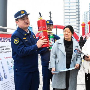 3月15日,工作人员在河南省济源市消费者权益日主题活动现场为消费者介绍如何鉴别假冒伪劣消防产品。