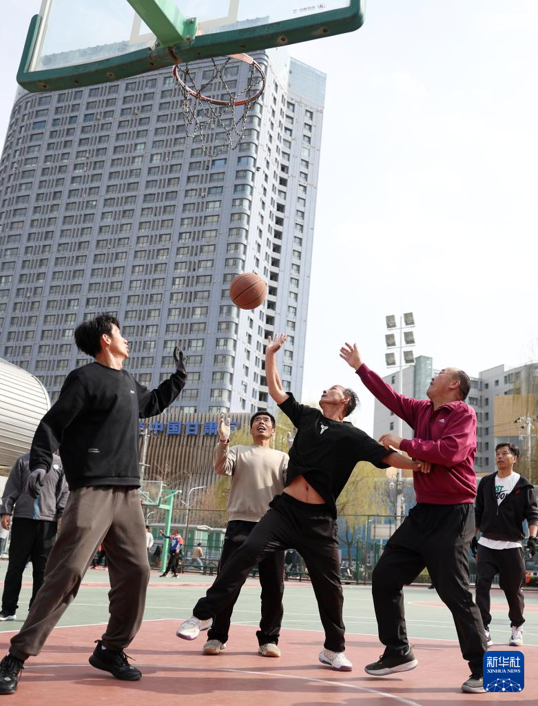 3月17日,市民在兰州市体育公园的篮球场打篮球。