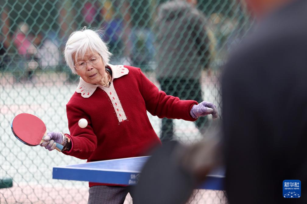 3月17日,一位老人在兰州市体育公园的乒乓球场打球锻炼。