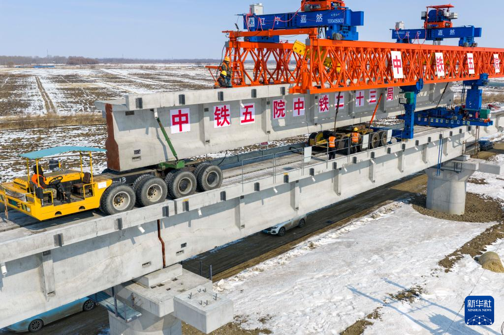 中欧班列“东通道”口岸段最长桥复工架梁-新华网