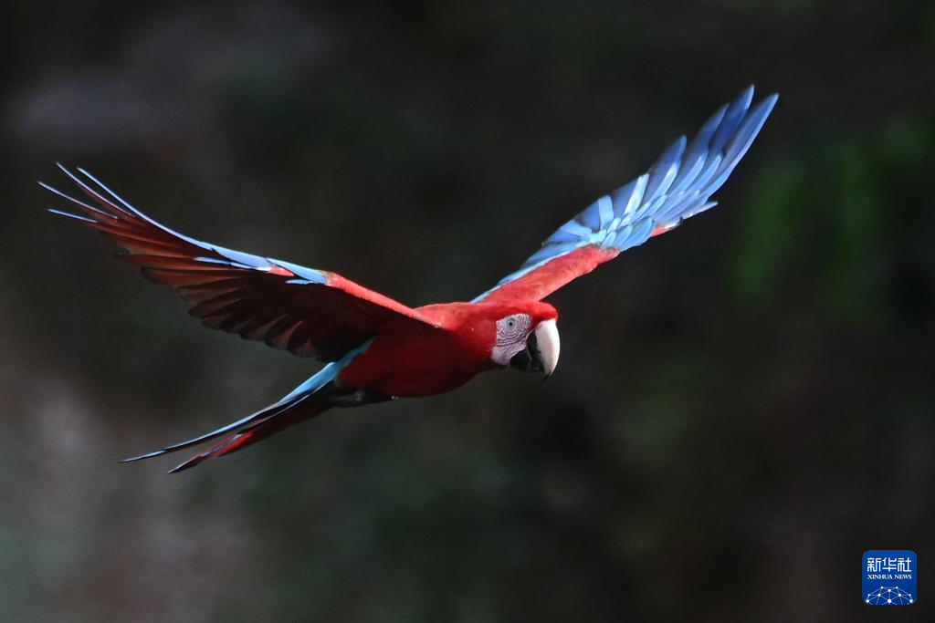 3月19日,金刚鹦鹉在巴西南部南马托格罗索州雅尔丁市的“金刚鹦鹉洞”飞翔。