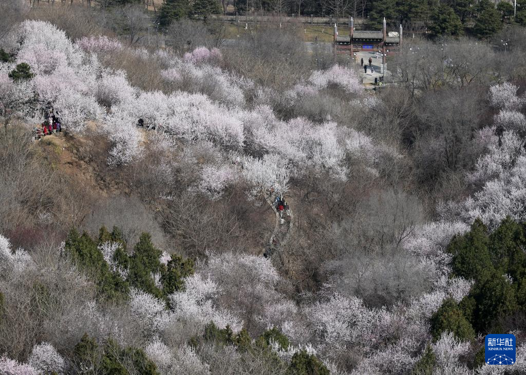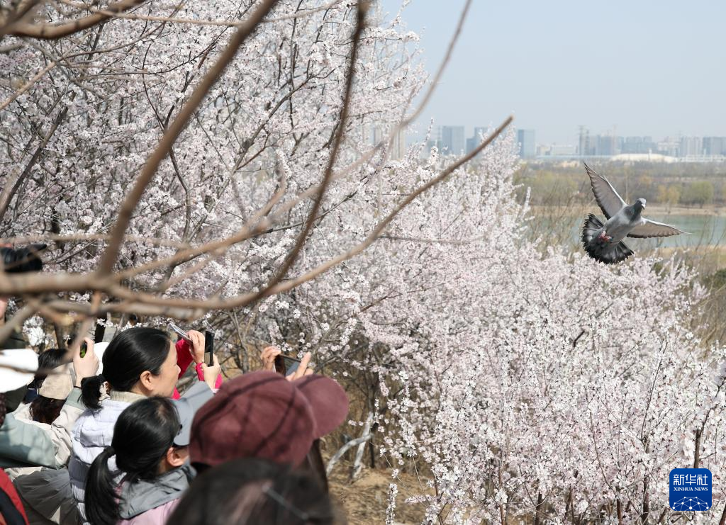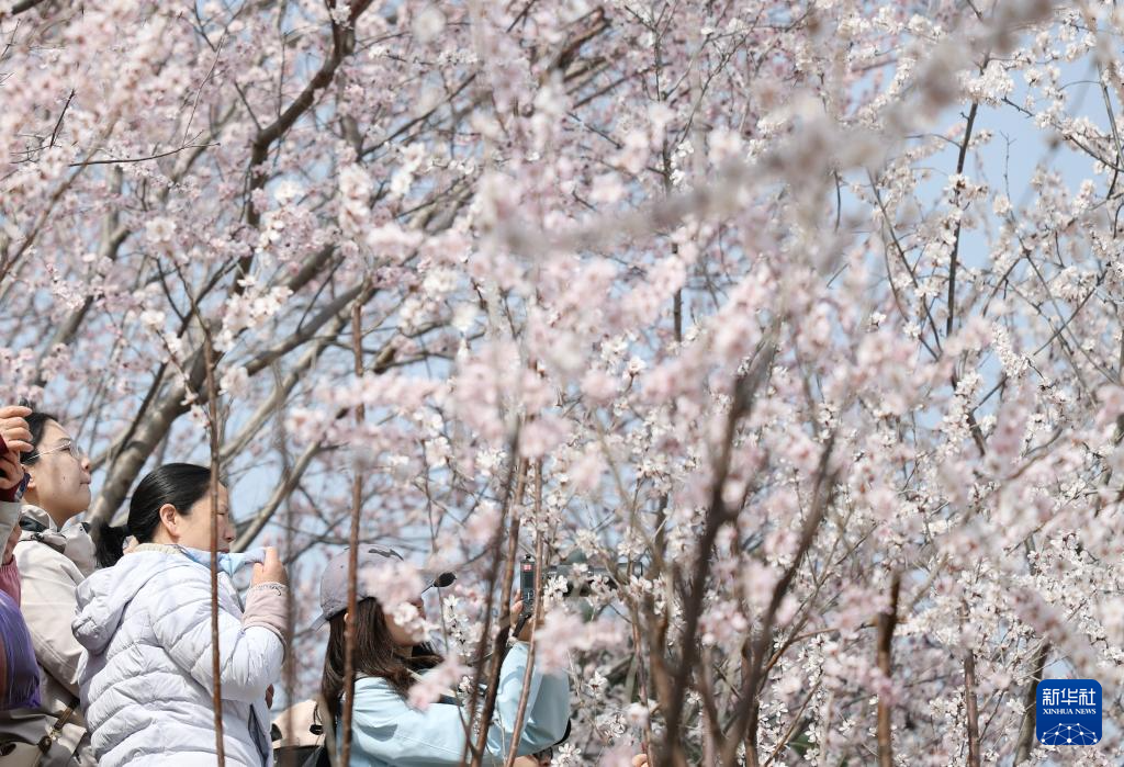 3月21日,游客在北京园博园赏花观景。