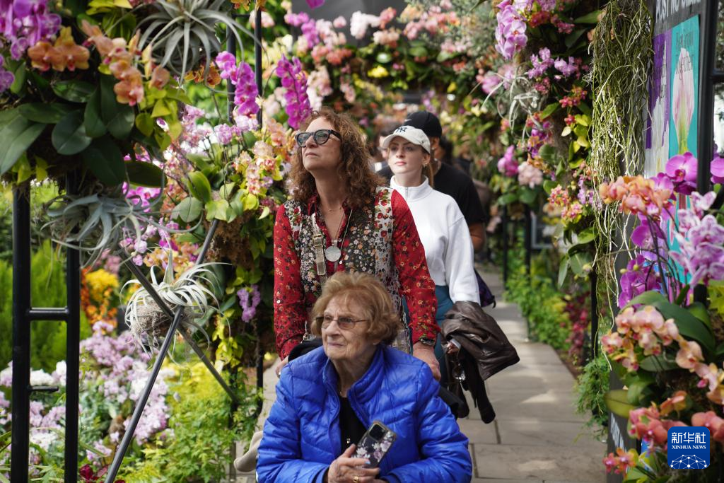 在美国纽约植物园举行的兰花展上,数千株兰花争奇斗艳,吸引众多市民和游客前来共赏春光。