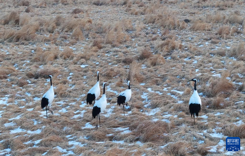 这是3月21日在黑龙江三环泡国家级自然保护区拍摄的丹顶鹤(无人机照片)。