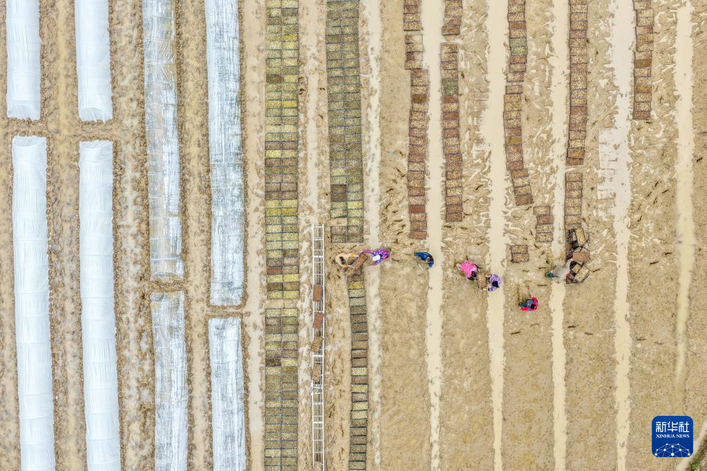 随着气温逐渐升高,在素有“渝东粮仓”之称的重庆市梁平区,农民抢抓农时进行水稻育秧等工作,田间地头一派繁忙景象。