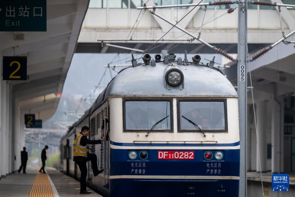 3月24日,停靠在十堰东站的检测列车准备上线运行。