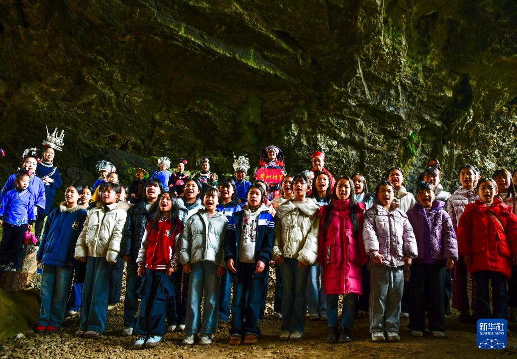 3月24日,孩子们在贵州省黎平县天生桥景区演唱侗族儿歌。