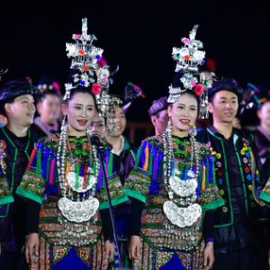 3月23日,村民在贵州省黎平县肇兴侗寨的鼓楼下排练侗歌,准备迎接来访的客人。