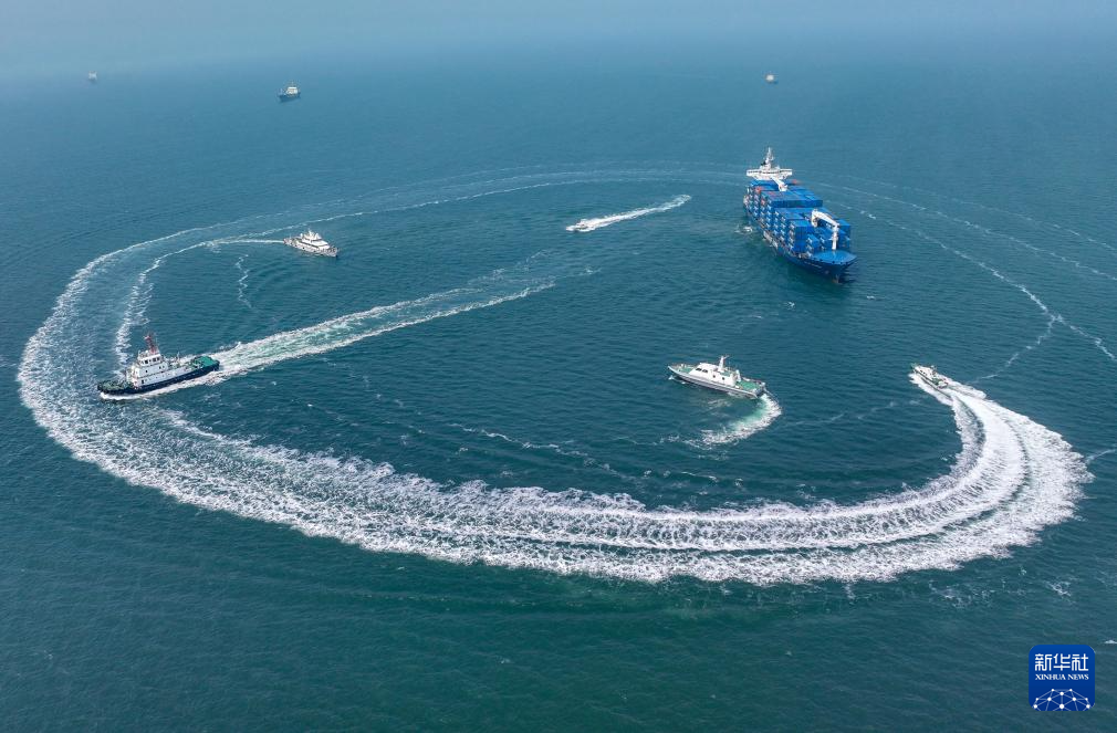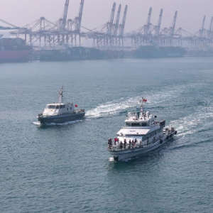 3月25日,执法船只在港区进行联合巡逻(无人机照片)。