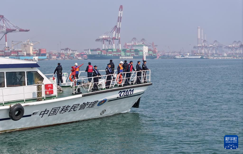 3月25日,山东出入境边防检查总站黄岛边检站联合海关、海事、港航公安等涉海部门,在山东青岛海域开展“国门利剑2026”联合执法行动,并同步开展海上应急处突演练,提升海上联防联控水平,筑牢国门口岸安全防线。