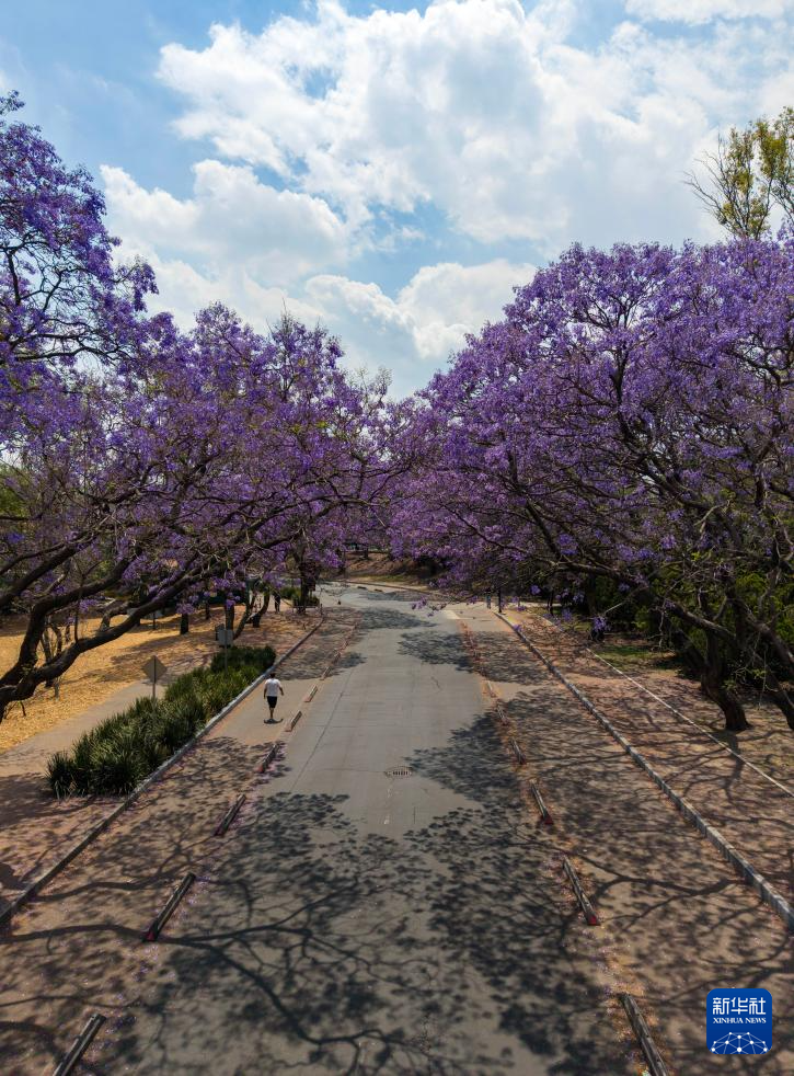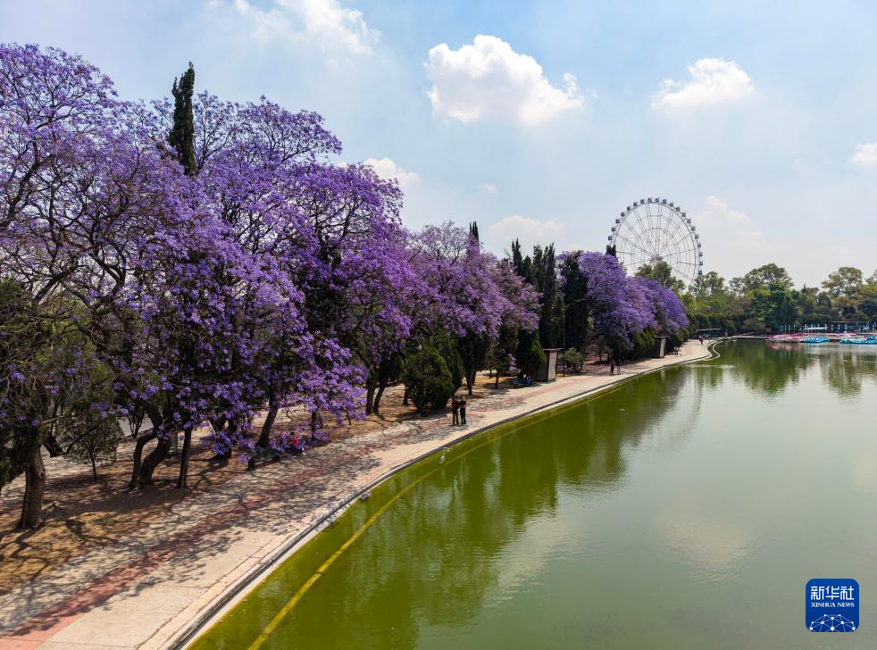 这是3月24日在墨西哥首都墨西哥城查普特佩克公园拍摄的蓝花楹(无人机照片)。