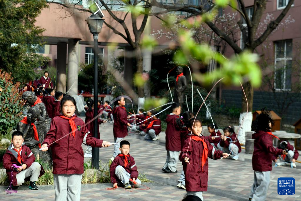 3月26日,在日照市莒县第一实验小学,同学们在进行阳光大课间活动。