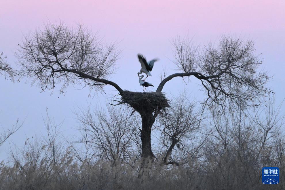 这是3月22日在黑龙江省齐齐哈尔市克钦湖湿地拍摄的东方白鹳。