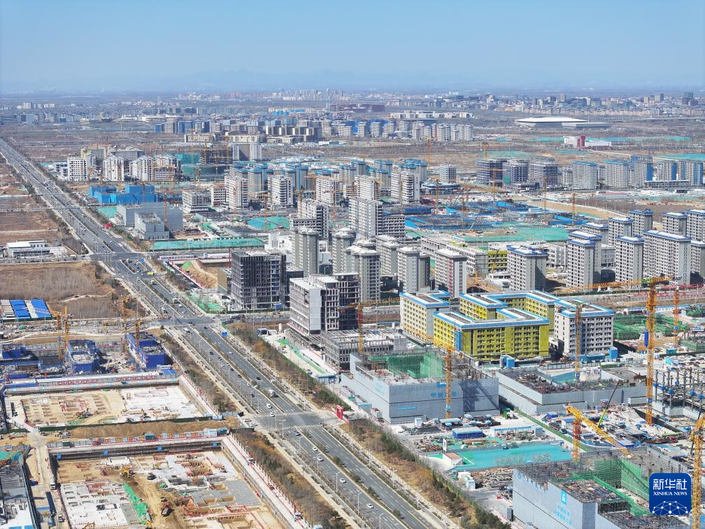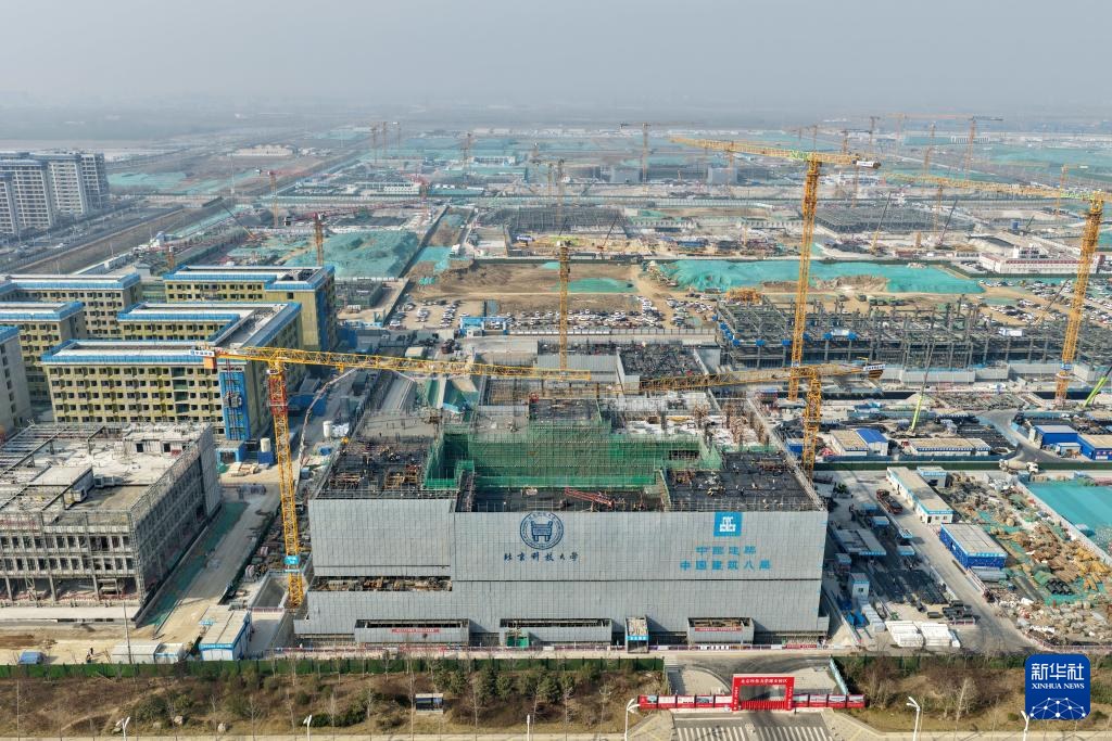 雄安新区北京交通大学雄安校区建设现场(3月18日摄,无人机照片)。