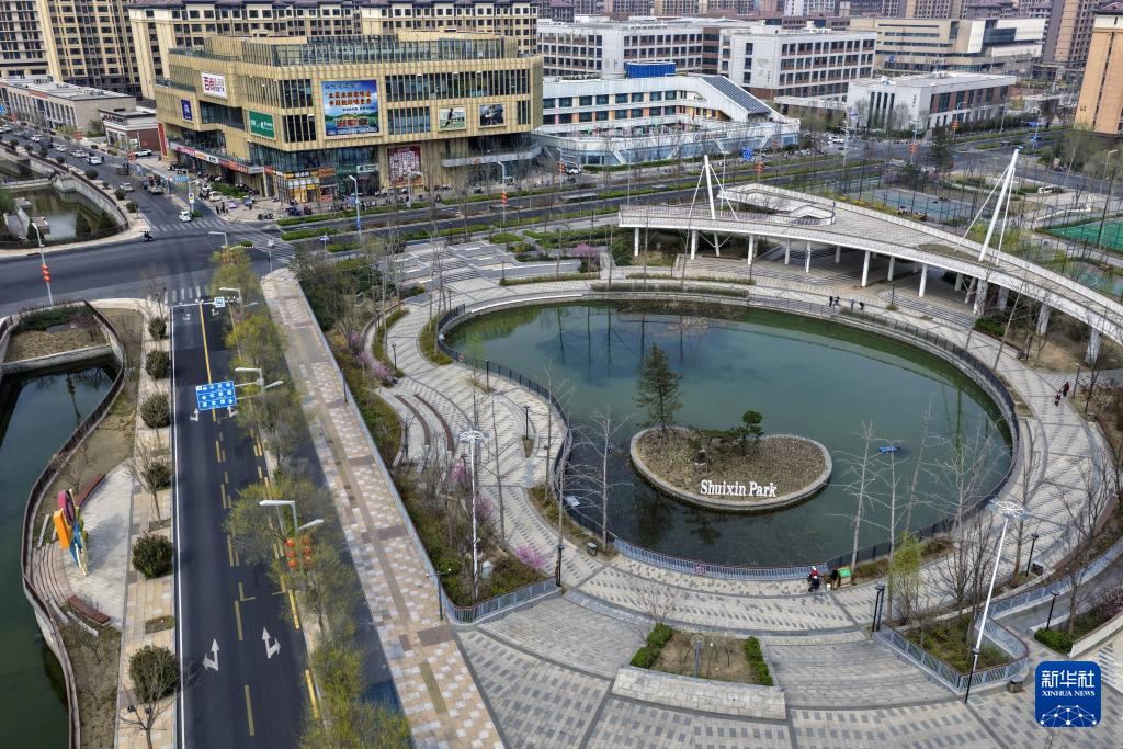 这是雄安新区容东片区金湖公园(3月26日摄,无人机照片)。