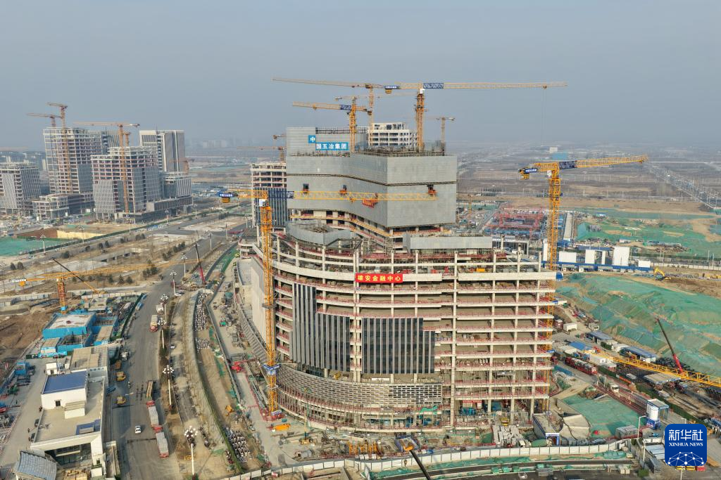 位于雄安新区启动区的雄安金融中心建设现场(3月25日摄,无人机照片)。