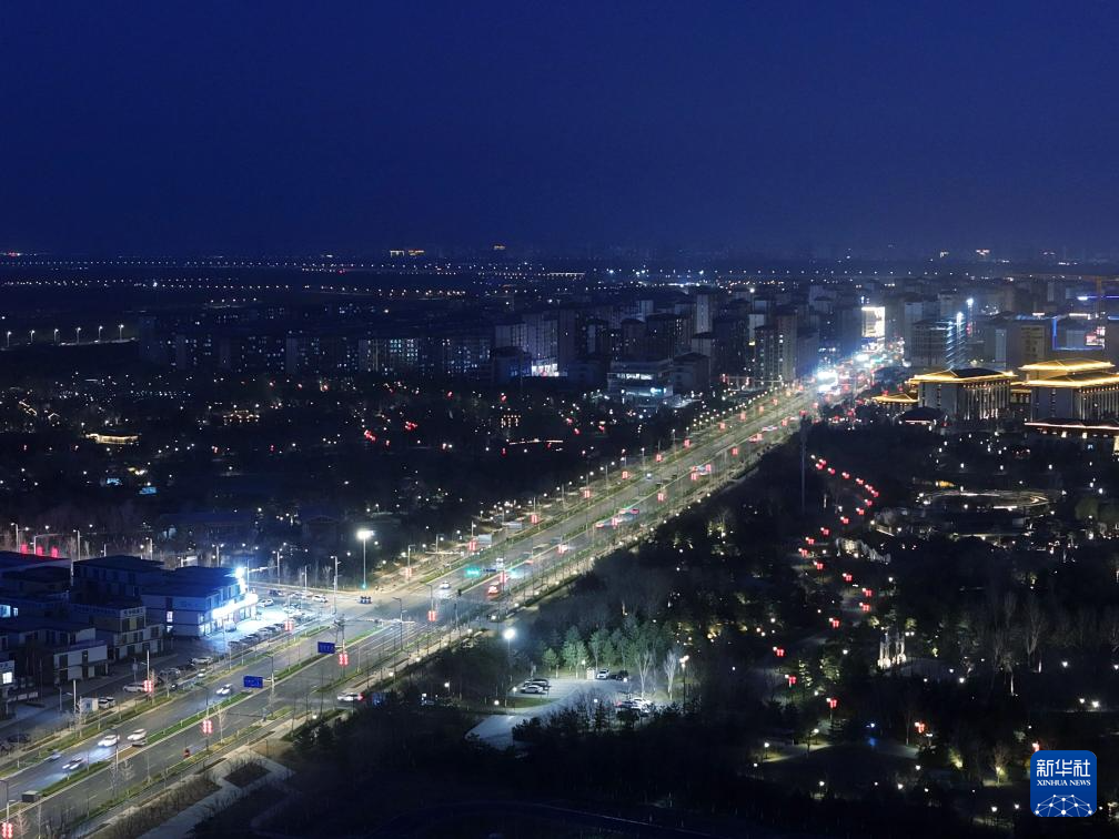 雄安新区夜景(3月27日摄,无人机照片)。