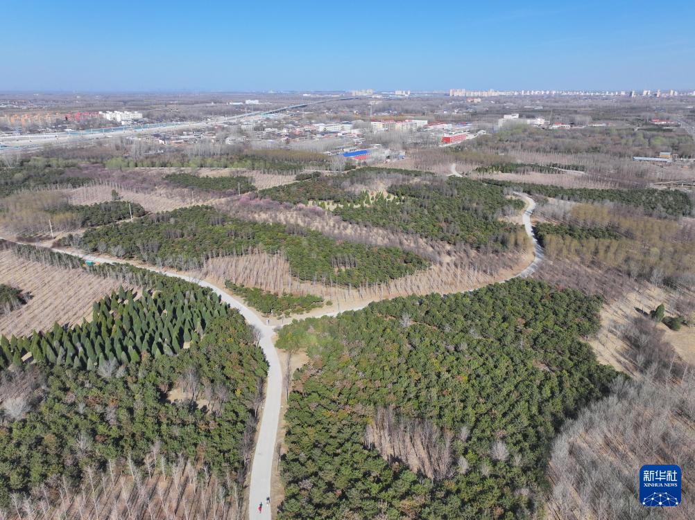 雄安新区“千年秀林”春意萌发(3月18日摄,无人机照片)。