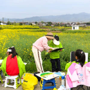 3月28日,学生在汉中市西乡县杨河镇高土坝社区油菜花观花点写生。
