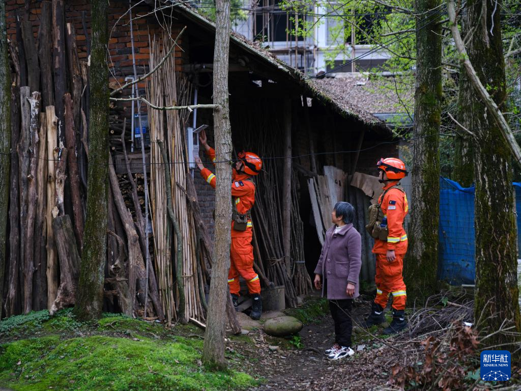 3月29日,消防救援人员在都江堰林区督导检查林区周边住户用电用火安全。