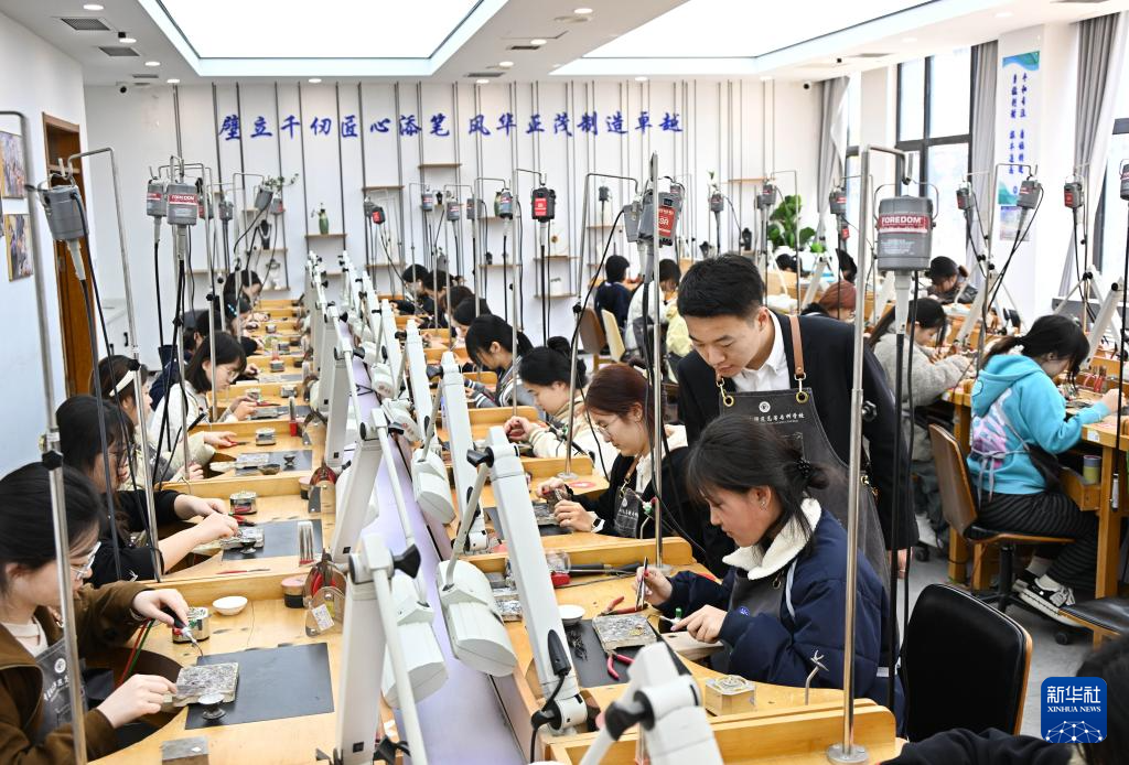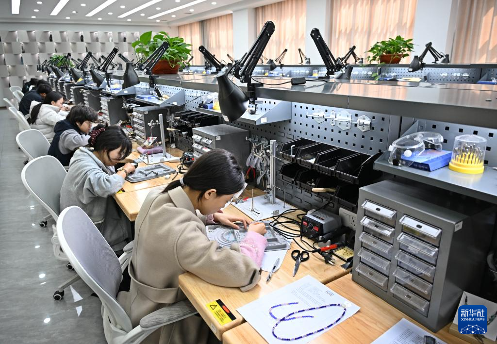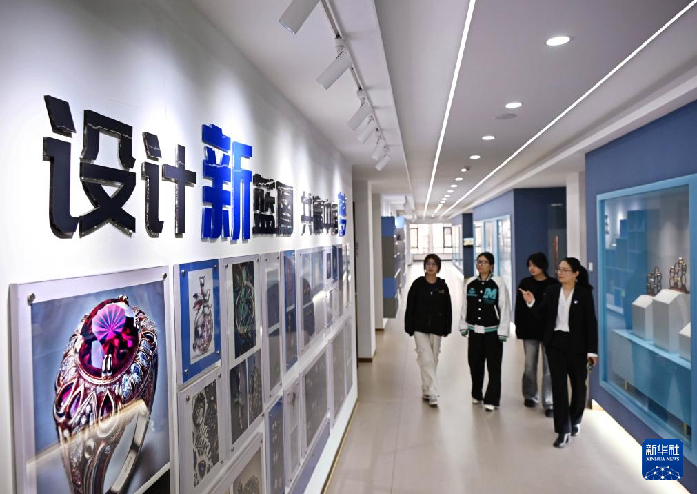 近年来,山东青岛幼儿师范高等专科学校珠宝学院依托校内实训基地和生产性实训平台,将珠宝行业全流程实操场景搬进课堂。学生在这里不仅能学习珠宝专业理论,练习宝玉石鉴定、加工、琢磨等传统技艺,还能学习AIGC首饰设计、3D建模、数码影像、直播带货等数字化技能,参与企业真实订单生产、产品质监检测等实战环节,掌握当下珠宝行业所需的复合型技能。