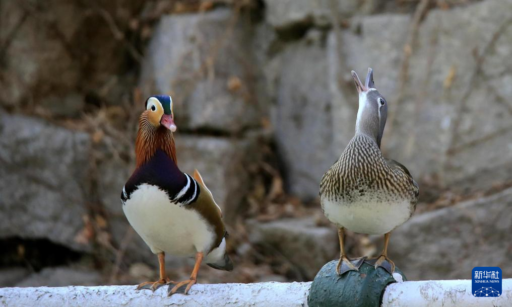 这是3月30日在哈尔滨市兆麟公园拍摄的一对野生鸳鸯。