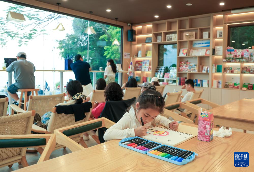 4月1日,游客在深圳人才公园的书吧内阅读和享用餐饮。