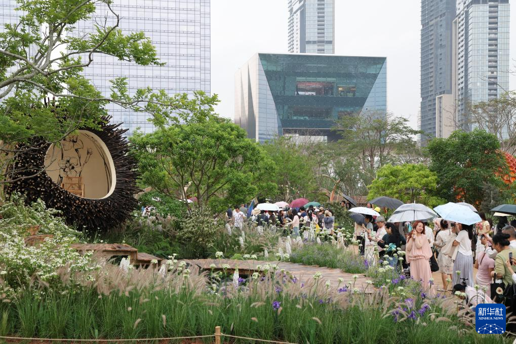 游客在深圳笔架山体育公园参观2026粤港澳大湾区花展。花展期间,公园联动商圈,为游客提供赏花、购物、住宿一站式体验(3月27日摄)。