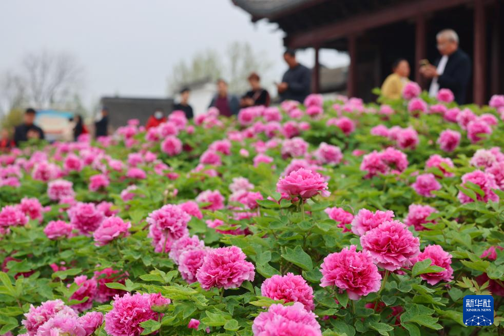 4月2日,游客在河南省驻马店市汝南县天中山文化园观赏牡丹。