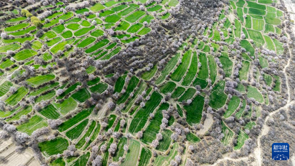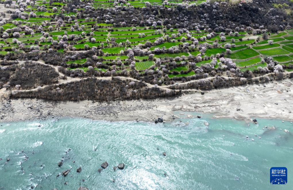 这是林芝市巴宜区朵当村桃花景色(4月2日摄,无人机照片)。