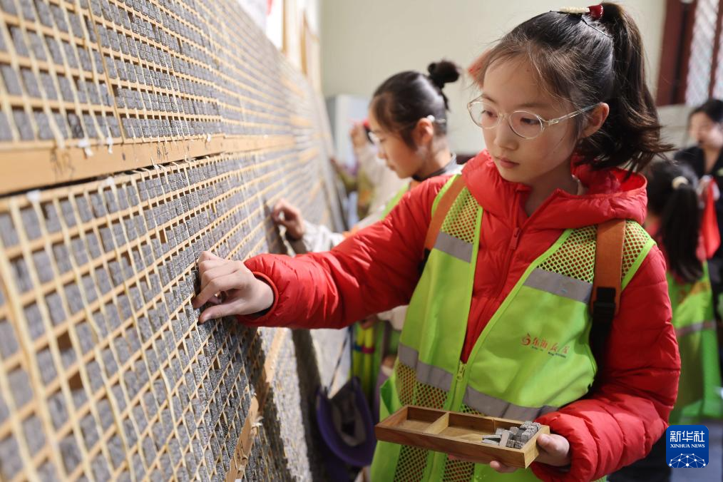 4月4日,在山东省临沂市沂南县竹泉村时光印记活字印刷体验馆,孩子们参加研学活动。