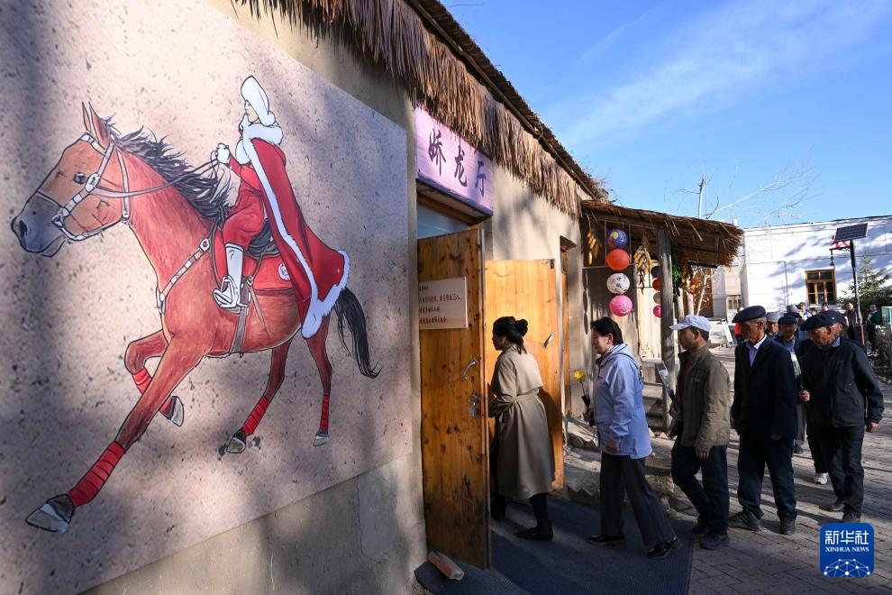 4月3日,人们排队进入新疆昭苏县灯塔知青馆娇龙厅献花。清明时节,新疆昭苏县举行仪式,追忆贺娇龙同志为当地经济社会发展、文旅品牌打造、农牧民增收致富作出的贡献,寄托昭苏县各族干部群众的深切哀思与崇高敬意。