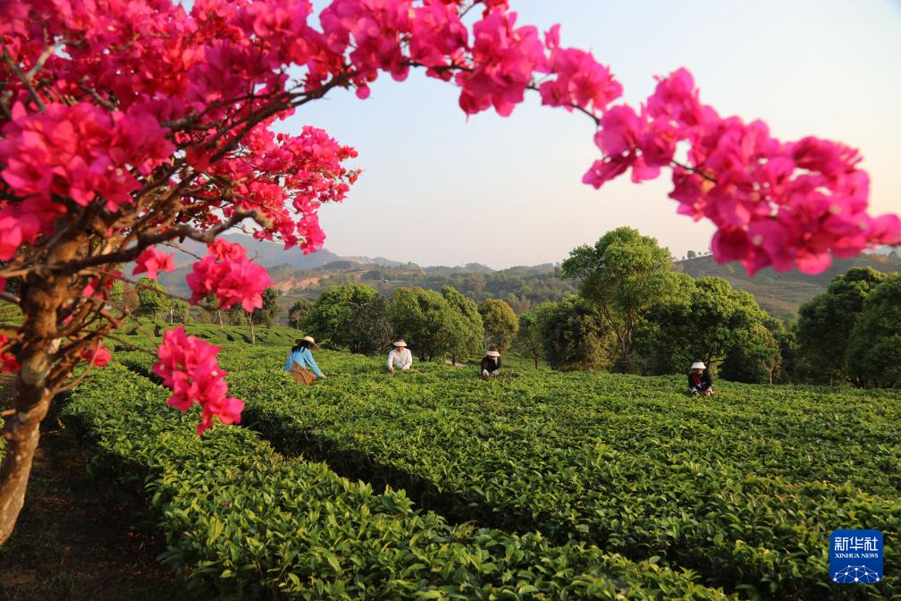 4月3日,茶农在云南省普洱市宁洱哈尼族彝族自治县宁洱镇温泉村茶园采摘春茶。