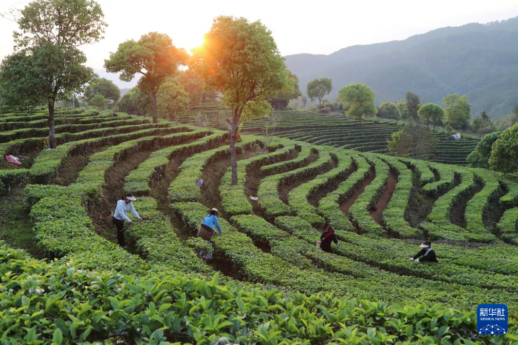 4月3日,茶农在云南省普洱市宁洱哈尼族彝族自治县宁洱镇温泉村茶园采茶。