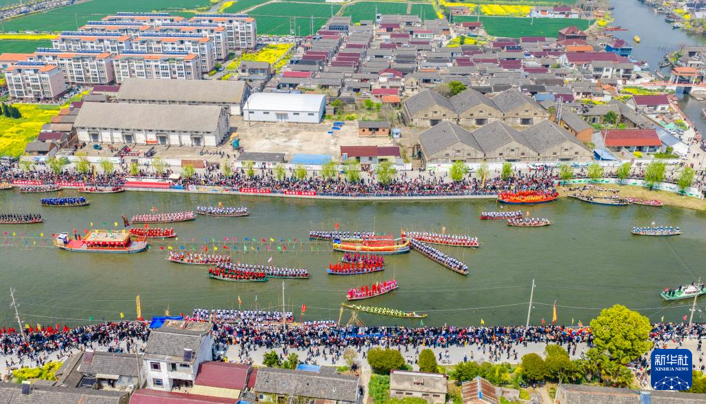 4月5日,选手参加茅山会船盛会(无人机照片)。