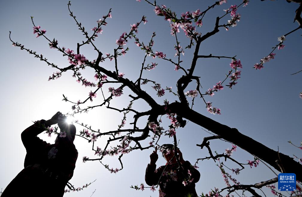 4月5日,果农在河北省邯郸市峰峰矿区彭城镇蔺家庄村的桃园里为果树疏花。