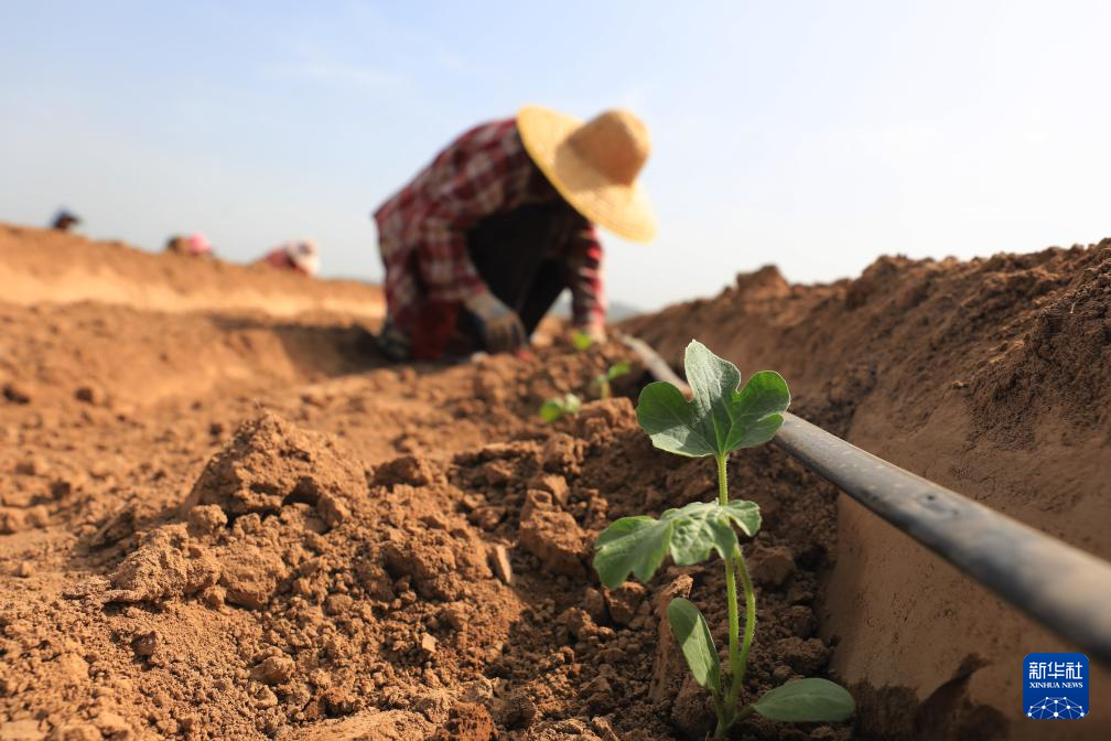 4月5日,河南省焦作市温县招贤乡仓头村村民在种植西瓜。