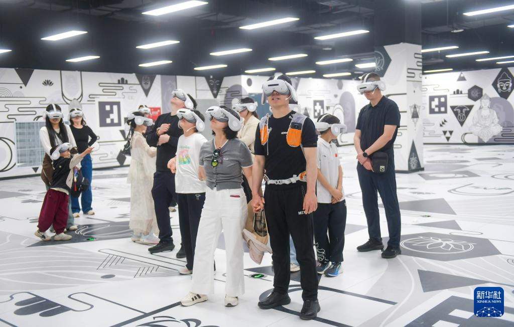 4月5日,游客在河南省洛阳市神都十三坊“梦神都·唐潮秘境”XR幻境剧场内体验游玩。